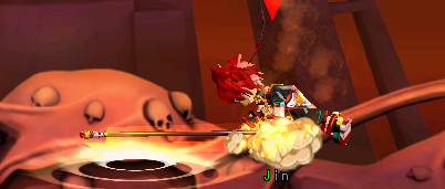 Sem barra de fúria: Jin ataca em direção ao chão duas vezes, e com mais impulso golpeia pela terceira vez, também levantando o oponente e possibilitando um air-grab (skill muito semelhante a Golpe Fatal nv3 da Espadachim).